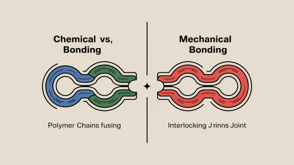 The success of a 2K molded part depends entirely on the compatibility of the two materials. A poor material choice will result in delamination and part failure. The goal is to achieve a strong, permanent bond, which can be accomplished in two ways.