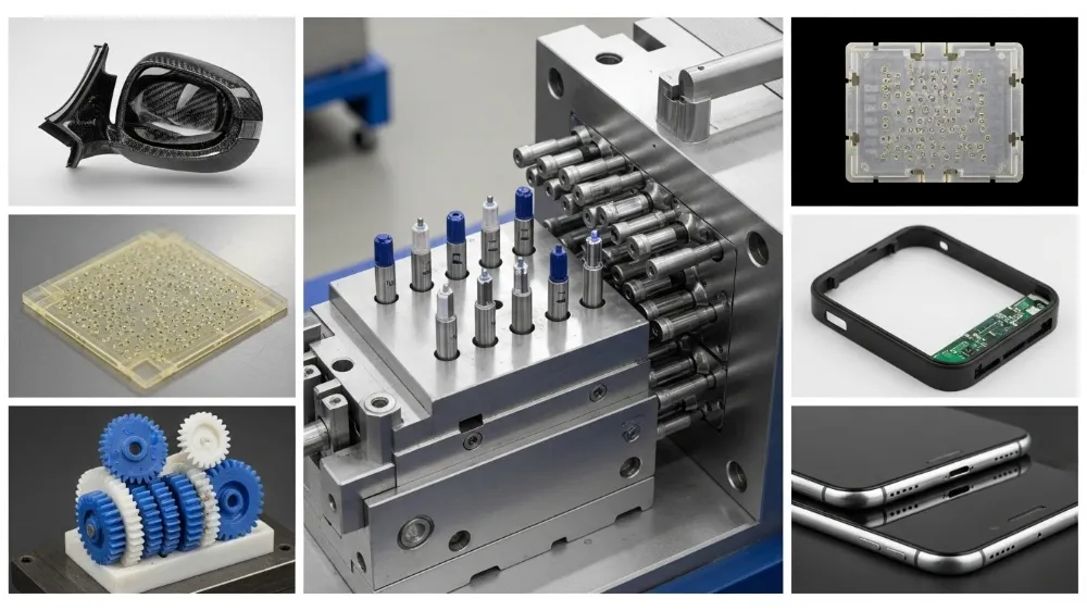 High-volume automotive parts, precision consumer electronics, and large injection-molded components.