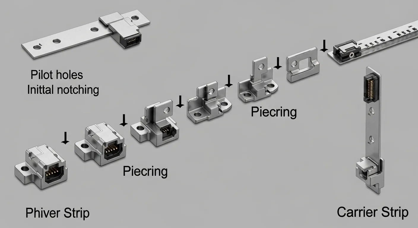 Imagine a long strip of metal moving through a machine. At station one, a hole is punched. At station two, a flange is bent. At station three, a logo is embossed. By the time the strip reaches the end, a finished part drops out. This is the pinnacle of efficiency.