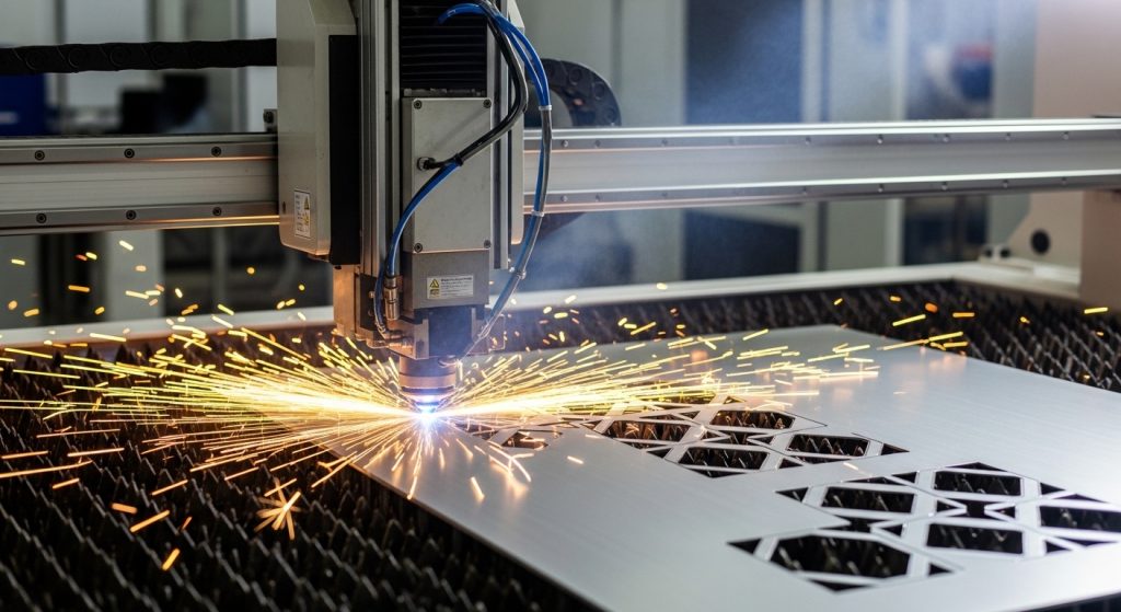 Cutting is the initial stage where the flat pattern is extracted from a large metal sheet. High-power fiber lasers or waterjets are the standard tools here. Laser cutting offers incredible speed and precision for complex geometries, while waterjets are ideal for thicker materials that are sensitive to heat.