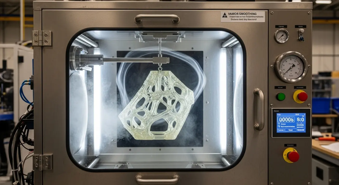This involves exposing the part to a vaporized solvent (such as acetone for ABS or specialized chemicals for Nylon). The vapor partially melts the outer "skin" of the part, allowing surface tension to pull the material into a smooth, glossy state.