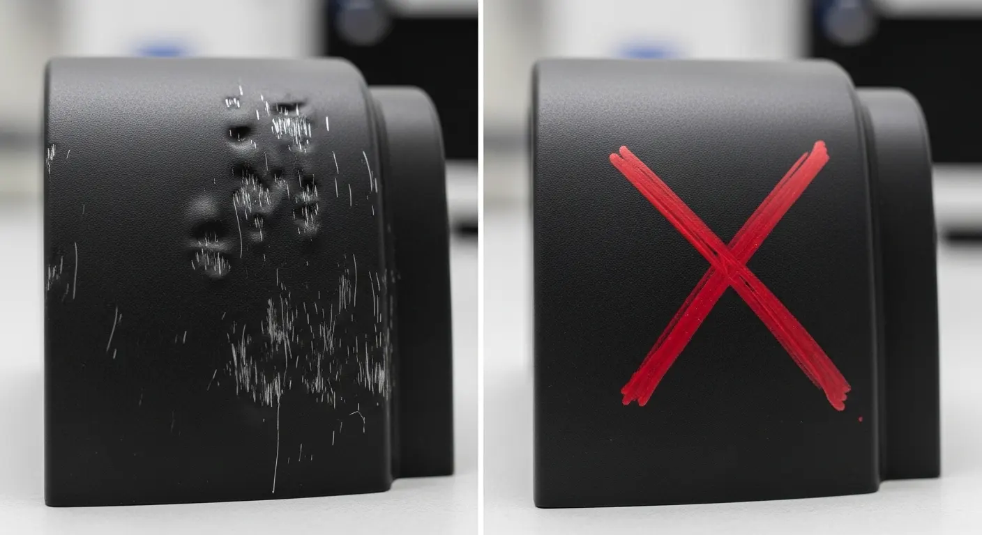 Aesthetic failures are common in the first trial. Sink marks—small depressions on the surface—often occur where thick ribs meet thin walls. Flash happens when plastic leaks between the mold halves, indicating that the clamping pressure is too low or the mold fit needs adjustment. Warpage is a sign of uneven cooling or internal stress. At SunOn, we analyze these defects during the 2K injection molding process and benefits evaluation to ensure that multi-material parts bond correctly without warping.